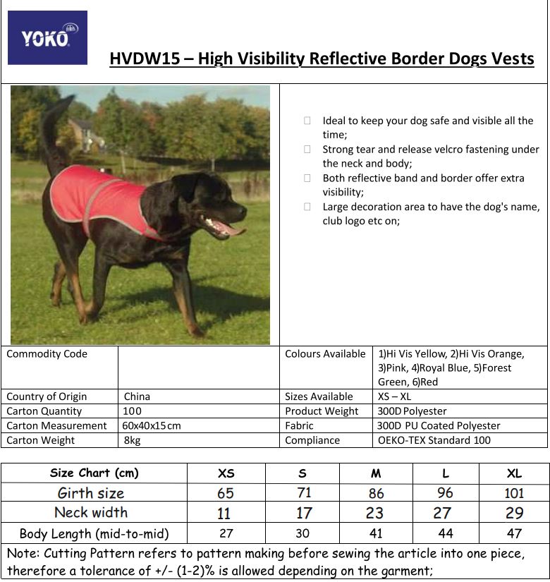 Yoko Hi-vis dog vest (HVDW15) YK180